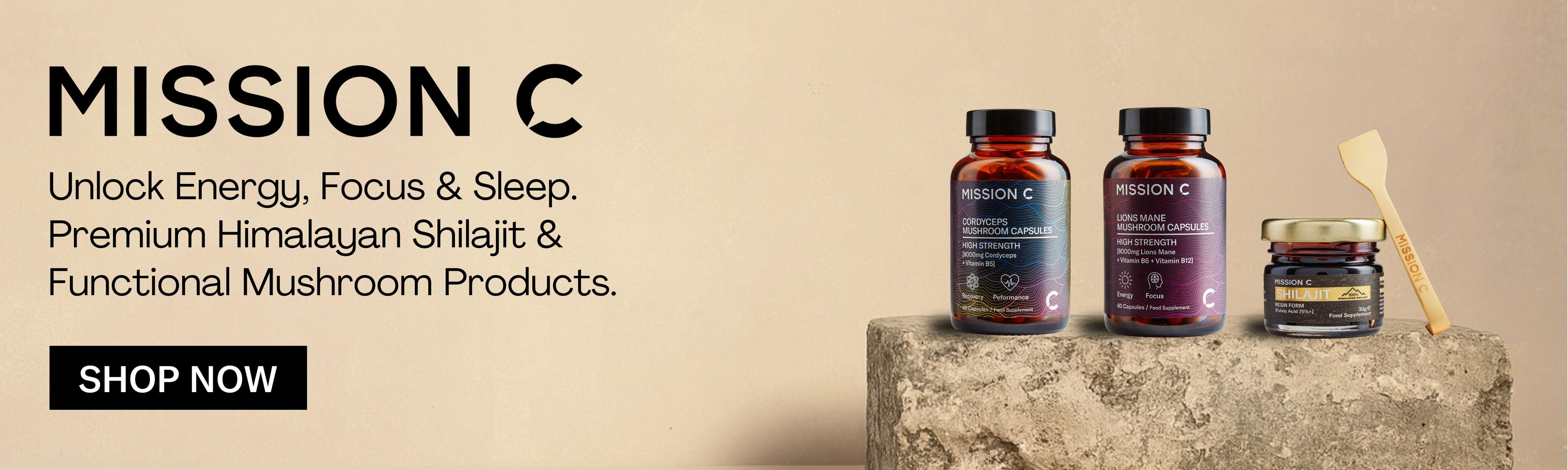 Check out Mission C's wellness line! We've got some awesome stuff with functional mushrooms like Lion's Mane, Reishi, and Cordyceps. Plus, we've added Shilajit for an extra boost. It's like ancient wisdom meets modern science, helping your brain and giving you more energy.